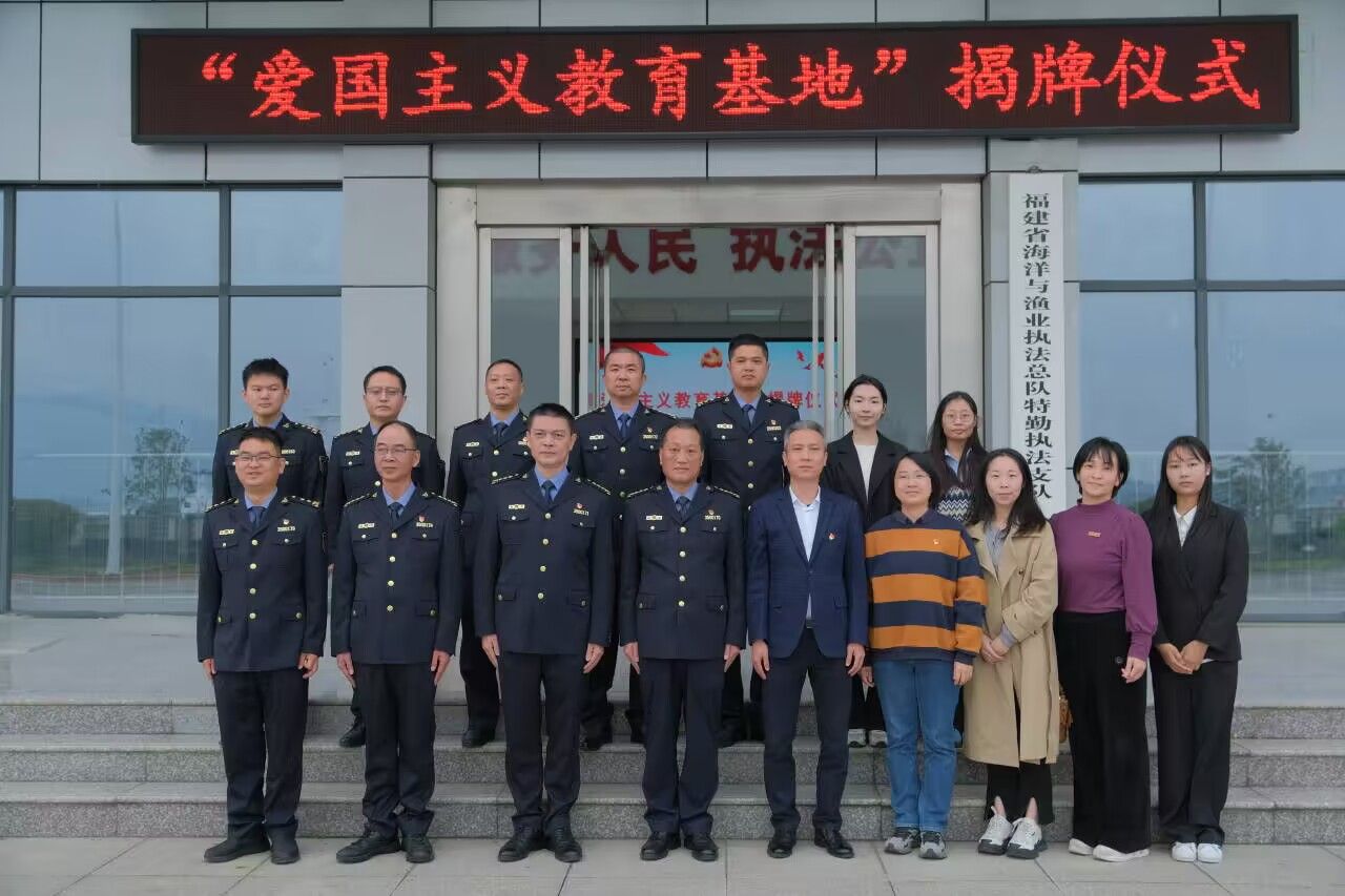 近日,我校betway西汉姆联官网与福建省海洋与渔业执法总队特勤执法支队共建爱国主义教育基地。福建省海洋与渔业执法总队特勤执法支队队长林传坚、政委王冬梦、三级调研员吴忠毅、betway西汉姆联官网负责人及师生代表参加揭牌仪式。