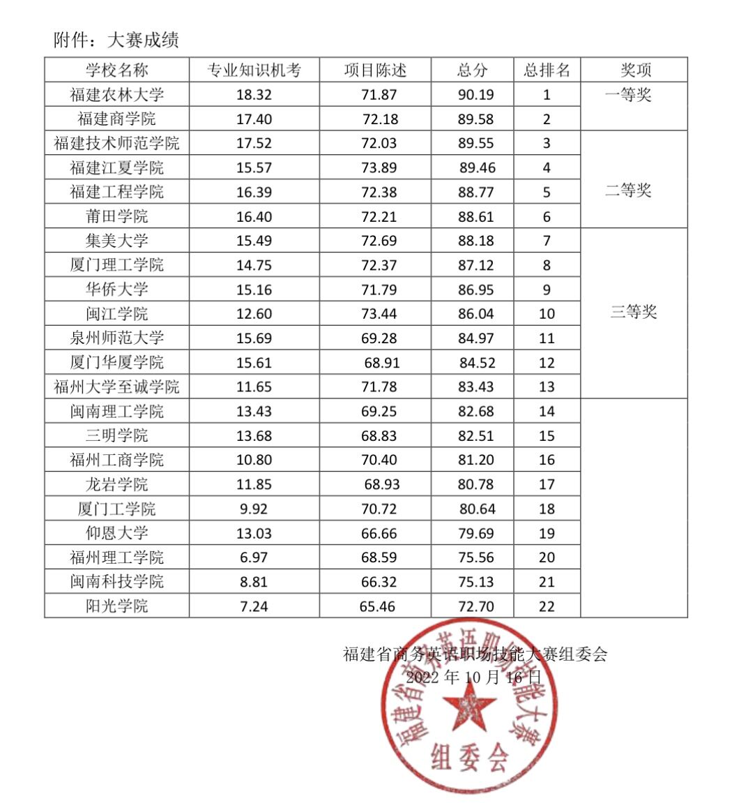 由福建省教育厅主办的2022年“亿学杯”福建省商务英语职场技能大赛于2022年10月16日落幕。经过专业知识机考、项目英文陈述、在线问答三个环节的激烈比拼,我校betway西汉姆联官网商务英语专业饶丽、姚家煌、郑梦婷、曾洲桐、张静茹、李嘉莉、肖莹、陈宇璐八位同学所组成的Spark X参赛代表队(指导老师:江盈盈、柯佳音)从全省22支参赛队伍中脱颖而出,荣获一等奖,是我校在该赛事中取得的最好成绩。