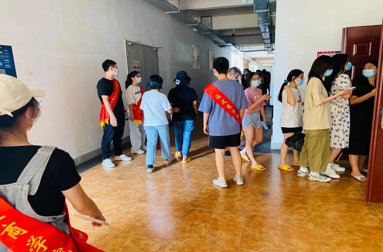 针对全员核酸检测时间紧、人数多、任务重的情况,党员教师们积极做好相关准备工作,对检测进行规范布置。检测开始后,所有志愿者们分工明确,各司其职,分管路线指引、信息登记、维持秩序等工作,引导学生按照学校布署的疫情防控工作规定进行核酸检测,同时协助做好学生的思想安抚工作,充分体现了党员的奉献与担当。