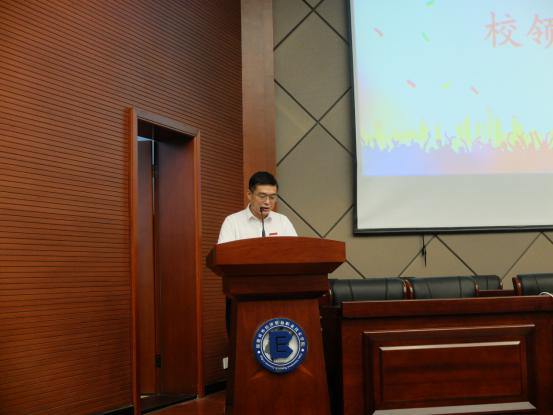 在观看2019届外语学子风采展示后,在场师生全体起立、奏唱国歌;主持人介绍出席领导及来宾,毕业典礼正式开始。典礼上,校党委吴访益副书记对同学们顺利完成学业、开启人生新征程表示祝贺,同时提出几点希望:希望同学们坚定信念,热爱新时代;知深行远,拥抱新时代;砥砺奋斗,建设新时代;担当报国,创造新时代。