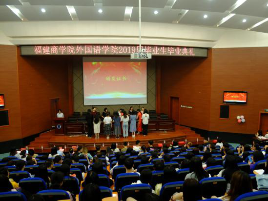 随后,外国语学院党委李珍书记宣读2019届优秀毕业生表彰决定,校党委吴访益副书记和betway西汉姆联官网老师们分别为2019届优秀毕业生颁发获奖证书、为2019届毕业生颁发毕业证书。