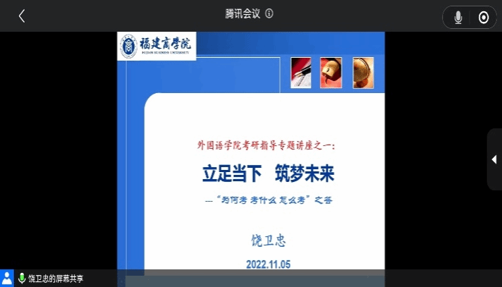 为帮助同学们做好考研规划,明确考研目标,2022年11月5日,betway西汉姆联官网于聚贤楼411会议室开展以“立足当下,筑梦未来”为主题的考研指导专题讲座。本次讲座采用线上与线下相结合的方式,学院副院长饶卫忠老师担任主讲人。