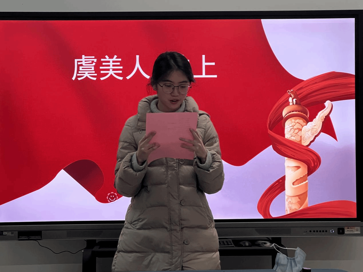 本次活动以“缅怀伟人 诵读经典 传承伟大建党精神”为主题,以毛泽东诗词中所蕴含的伟大建党精神分为“红军不怕远征难”“问苍茫大地谁主沉浮”“雄关漫道真如铁”“无非一念救苍生”四个篇章。在第一篇章,读书社全体成员分别朗诵了《七古·送纵宇一郎东行》《七律·长征》,在诗词中感悟毛泽东同志在励人与自勉中上下求索、立志报国的雄心壮志,体会他坚持革命理想高于天,愈挫愈勇,带领红军一次次绝境重生的豪迈气概;在第二篇章,读书社一组成员诵读了《清平乐·蒋桂战争》《沁园春·长沙》,再现了中国共产党领导农民“打土豪、分田地”生动画面和毛泽东同志对国家命运的感慨和以天下为己任,改造旧中国的豪情壮志;第三篇章中,读书社二组成员诵读了《西江月·井冈山》,带领师生们深刻体会中国工农红军不怕牺牲、英勇斗争的革命精神;在第四篇章,读书社三组成员朗诵了《七律·重庆谈判》,深刻领悟了共产党人一切为了人民大众、要拯救劳苦大众于水深火热之中的伟大理想。