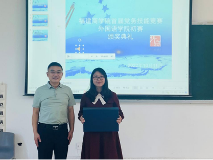 校党委副书记吴访益为一等奖获得者颁奖,吴访益副书记指出,党务干部职业能力竞赛不仅是学习形式的一种拓展,更是通过比赛的组织过程,展现出了betway西汉姆联官网党委的新气象、新风貌。他希望全院广大党员,要继续加强学习和交流,主动增强创先争优意识,把学习成果和参赛热情转化为工作动力,努力在各自岗位上有效掌握新方法、增长新才干、解决新问题,让本职工作更加高质高效,为学校高质量发展不断贡献力量。读书社要围绕学习贯彻党的二十大精神这条主线,带领学生认真学习习近平新时代中国特色社会主义思想,助力青年学生在青春的赛道上跑出当代青年最好的成绩。