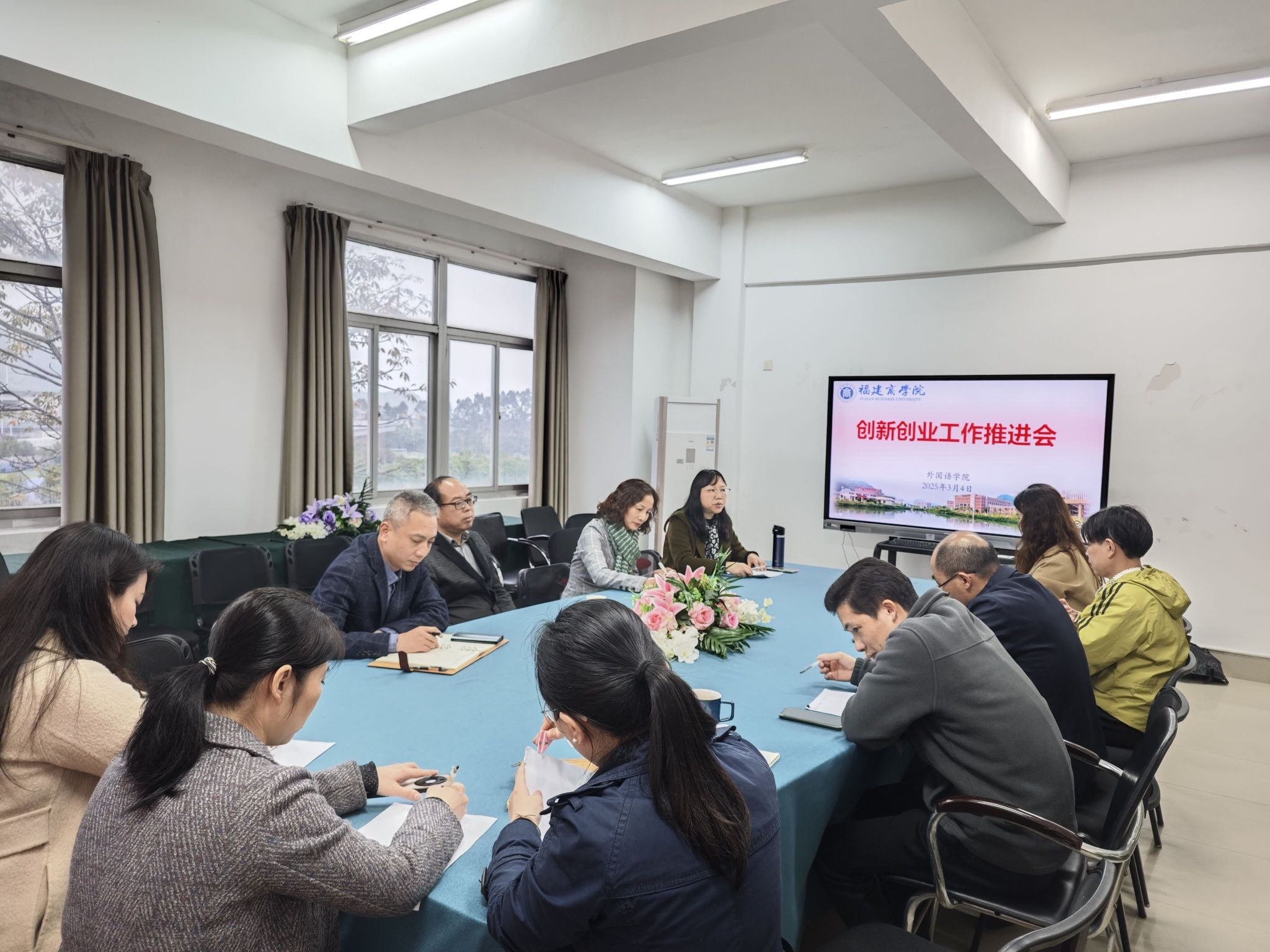 随后,结合学院实际,会议进一步明确了“一学院一品牌、一专业一赛事”的工作开展思路,梳理了学院今后创新创业模块的工作重点,并就今年的创新创业工作做了初步的部署。吴思锋主任建议,学院应充分发挥外语学科优势,对标各项国赛章程,从产教融合、学科交叉中挖掘创新创业项目,同时为学生学科竞赛工作开拓新思路。