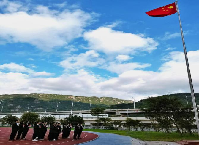 为庆祝中华人民共和国成立72周年,引导学生深入学习党史,厚植爱国主义情怀,2021年10月4日,betway西汉姆联官网于马尾校区田径场举行升旗仪式,学院师生代表参与本次活动。
