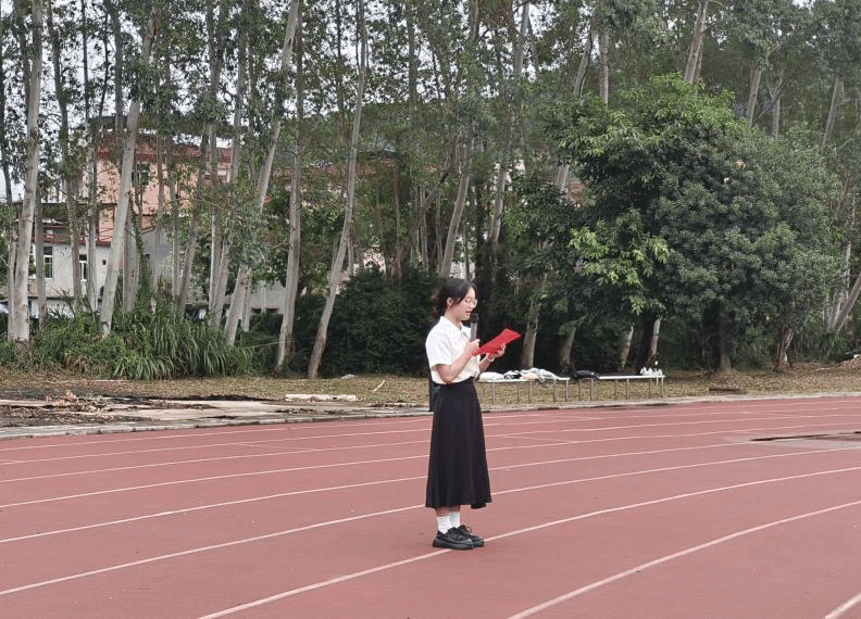 国旗护卫队队员着装整齐,昂首挺胸,迈着整齐划一的步伐,护送五星红旗庄严入场。国歌响起,全体师生庄严肃立,向国旗行注目礼。学生代表郭文静同学进行了“学思践悟二十大,强国复兴勇担当”主题国旗下发言,她提到国家在面对复杂多变的国际形势时,坚定决心,攻坚克难,取得了傲人成就,展现出国家科技实力、民族精神和文化自信的力量,以亚运会开幕式将中华文化的深刻内涵与现代科技创新高度创新高度结合为例,强调当代青年应保持文化自信,坚定理想信念,将中华优秀传统文化发扬光大,讲好中国故事,传播好中国声音,做中华文化的弘扬者和建设者。站在两个一百年的历史交汇点上,青年学子要勇担时代责任,在推进中华民族伟大复兴的征途中不忘初心、牢记使命,以更加昂扬的精神状态,奋进新征程,建功新时代!