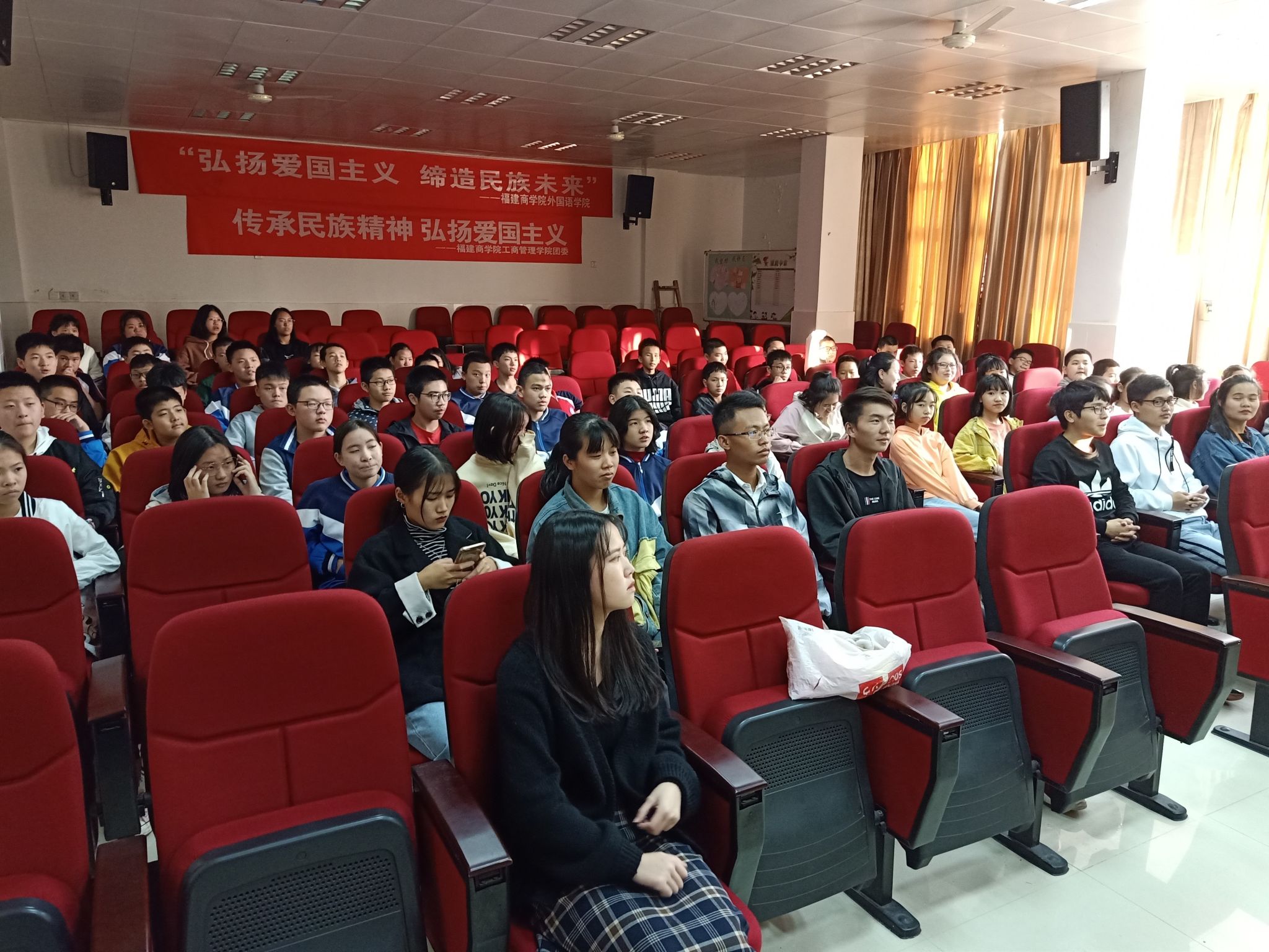 为进一步弘扬社会主义核心价值观,激发学生爱国热情,2019年11月19日,betway西汉姆联官网前往马尾区闽安中学开展“弘扬爱国主义,缔造民族未来”爱国主义教育进校园活动。本次活动面向学院全体学生。