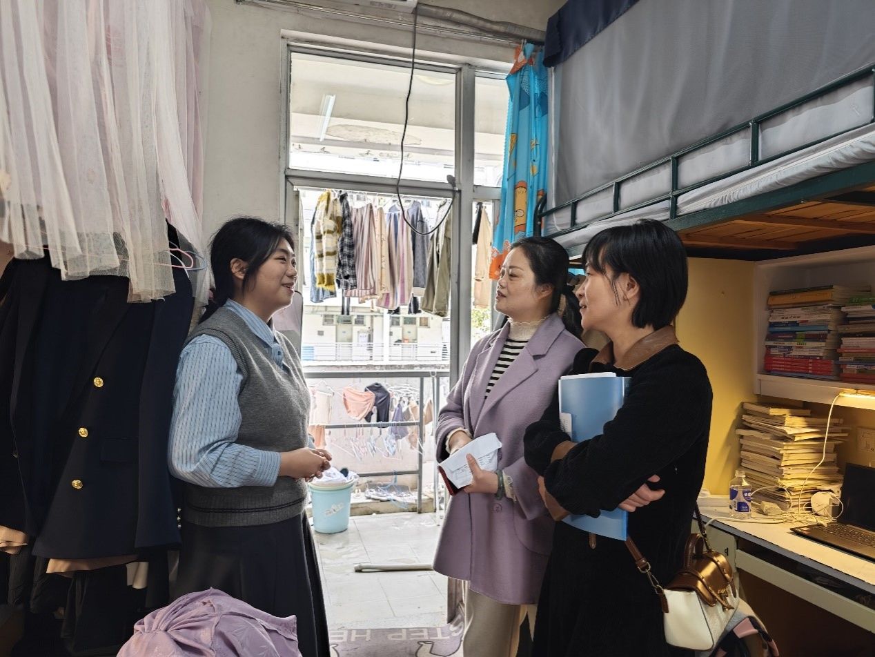 2024年3月27日,西汉姆官网党委副书记杨爱娥带领辅导员、自律会学生干部走进学生宿舍,进行实地走访调研,深入了解同学们的生活环境和学习状态,给同学们送去关怀和问候。