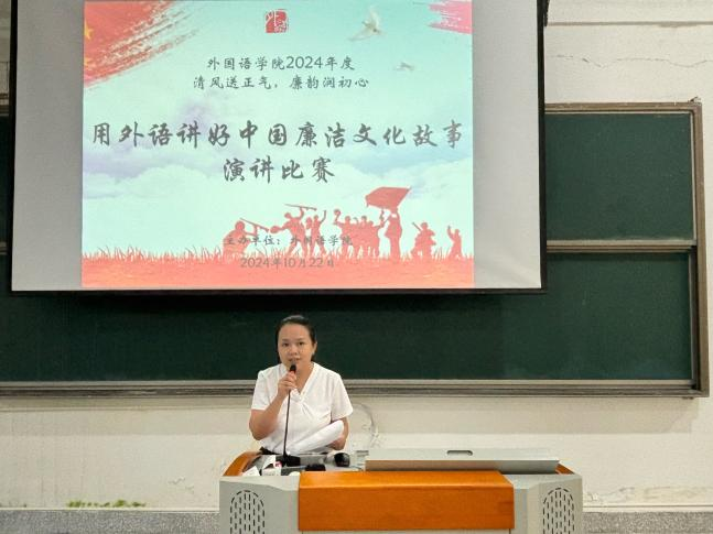 为推动廉洁教育在教育教学全过程中的融入,培养具有深厚语言功底与高尚情操的外语人才,10月22日,betway西汉姆联官网于马尾校区国际厅开展“清风送正气,廉韵润初心”——“用外语讲好中国廉洁文化故事”演讲比赛。本次比赛共分为英语组、日语组两个组别,李林株老师、谢玉容老师、郭桓老师、梅诗琪老师、翁云星老师受邀担任本次比赛评委。