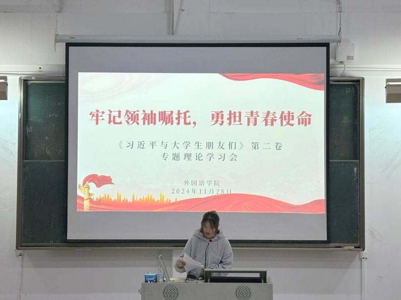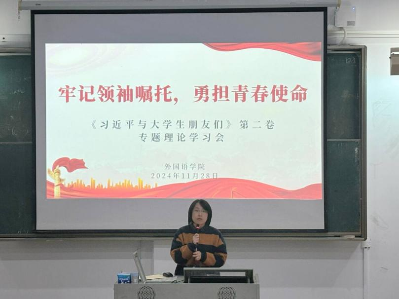 为深入学习贯彻习近平新时代中国特色社会主义思想,进一步激发广大团员青年的责任感和使命感,11月28日,betway西汉姆联官网于澳洲厅开展主题“牢记领袖嘱托,勇担青春使命”专题理论学习会。本次学习会主要学习《习近平与大学生朋友们》第二卷,学院团委书记翁云星老师、团委学生干部代表及各年级团员代表参与本次学习。