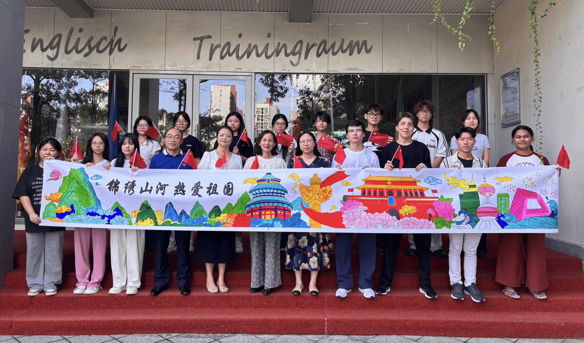 为庆祝中华人民共和国成立76周年,厚植外院学子的爱国情怀与家国担当,在中外交流讲好中国故事、传播中国声音,9月28日,betway西汉姆联官网于外语体验活动中心举办“执青春之笔,共绘千秋华章”主题画卷共创活动,学院党政班子成员、学生代表及留学生共同参与,执笔共绘多彩画卷。