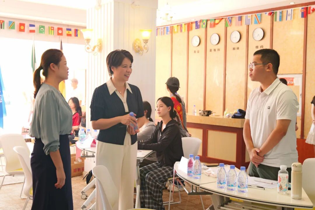 为帮助新同学高效完成报道手续,确保迎新工作有序进行,校党委书记吴访益、校长程灵深入迎新一线,与新生及家长亲切交流,热烈欢迎他们的到来,并对积极参与迎新工作的志愿者们表示慰问。志愿者们一早到达迎新现场,协同合作,精心筹备,热情洋溢,从主动帮新生搬运行李到耐心介绍校园环境,环环相扣为新同学提供一站式贴心服务,全力保障迎新流程不卡壳、服务不缺档,让新生感受来自外院的温暖与体贴。