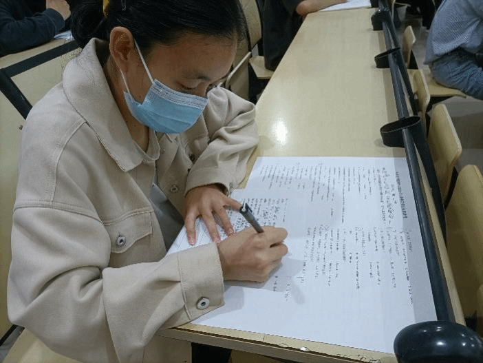 本轮预赛以笔试的形式进行双语词汇竞赛。试题内容从多个方面综合考察选手的双语转换和应用能力,将有关党的知识和语言应用有机结合,在检验专业能力的同时,考察选手们的党史学习成果。预赛现场,选手们埋头奋笔疾书,志愿者们严格监视着考场纪律,考场上格外肃静。历经两个小时,选手们都各尽其能,用自己过硬的专业素养,交出了凝聚着自己智慧和心血的答卷,最终20名选手晋级决赛。